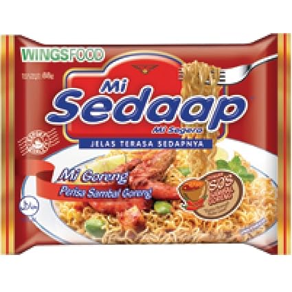 52 53g Carbs. Mi Sedaap Sambal Goreng flavor is to cater to Malaysians that love spicy taste. Wings Food Mie Sedaap Original Instant Fried Noodle Mie Sedap Mie Goreng Asli in 317oz 91g Pack.