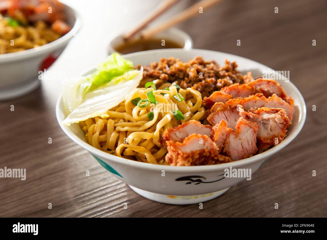 A Kolo Mee Is A Sarawak Malaysian Dish Of Dry Noodles Tossed In A Savoury Pork And Shallot Mixture Topped Off With Fragrant Fried Onions Stock Photo Alamy